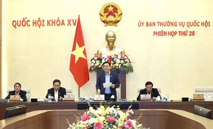 Dans son discours d'ouverture, le président de l'Assemblée nationale, Vuong Dinh Huê, a déclaré qu'il s'agissait de la première séance ordinaire du Comité permanent de l'Assemblée nationale en 2024, avec pour objectif de donner des avis sur les contenus préparés pour la 5e session extraordinaire de la XVe législature prévue.