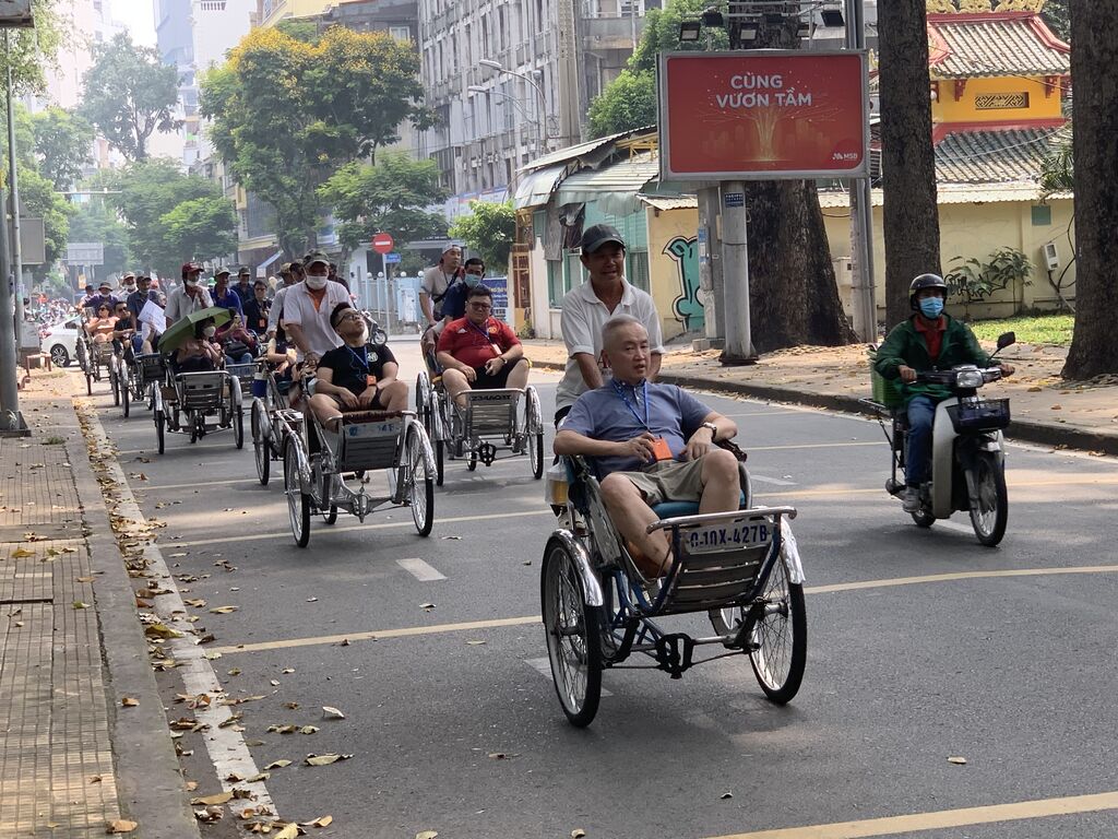 | Les touristes étrangers découvrent Hô Chi Minh-Ville. |