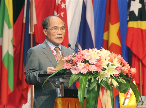 | Le président de l'Assemblée nationale du Vietnam, Nguyên Sinh Hùng, prend la parole lors de la cérémonie d'ouverture de la 35e Assemblée générale de l’Assemblée interparlementaire de l'ASEAN, le 16 septembre à Vientiane. |