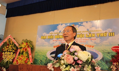 | Trân Tan Hung, vice-président du Comité des affaires religieuses du gouvernement, prend la parole à l'Assemblée générale de l'Eglise Baptiste du Vietnam. |