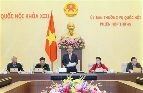 | Le président de l'Assemblée nationale, Nguyên Sinh Hùng, présente son allocution d'ouverture de la 45e session du Comité permanent de l'AN. |