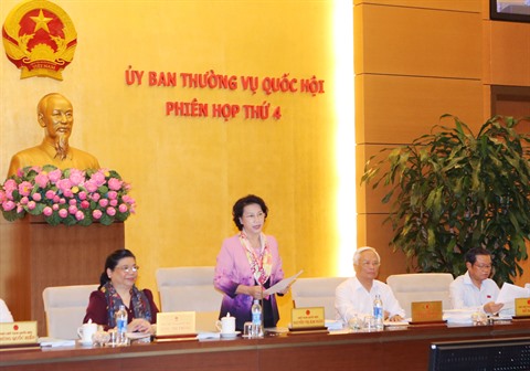 | La présidente de l'AN, Nguyên Thi Kim Ngân (debout), lors de la 4e réunion du Comité permanent de l’AN de la XIVe législature, le 3 octobre à Hanoï. |