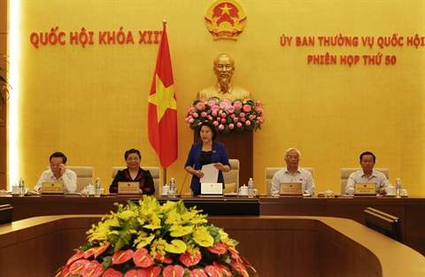 | La présidente de l'Assemblée nationale, Nguyên Thi Kim Ngân, prononce le discours d'ouverture de la 50e réunion du Comité permanent de l'organe législatif vietnamien, le 11 juillet à Hanoi. |