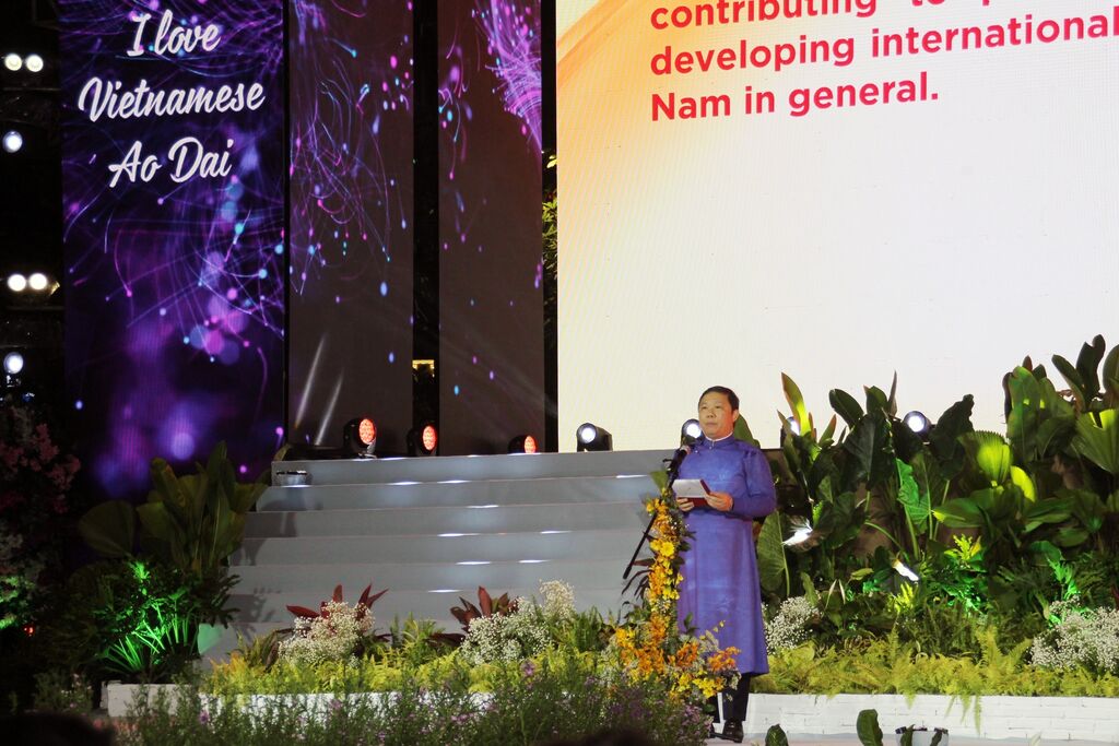 | Le vice-président du Comité populaire municipal Duong Anh Duc prend la parole à l’ouverture de la 9e Fête de l'áo dài de Hô Chi Minh-Ville. |