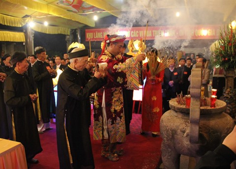 | Cérémonie d'obtention de l'audience avant l'ouverture de la fête du Temple des rois Trân, commune de Tiên Duc, district de Hung Hà, province de Thai Binh (Nord), le 9 février. |