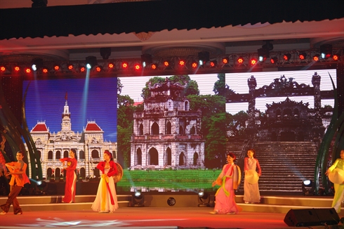 | Spectacle artistique à l’ouverture de la foire internationale du tourisme à Hô Chi Minh-Ville. |