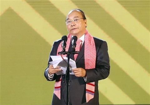 | Le Premier ministre Nguyên Xuân Phuc à la cérémonie d'ouverture de la fête de la brocatelle le 14 janvier dans la province de Dak Nông. |