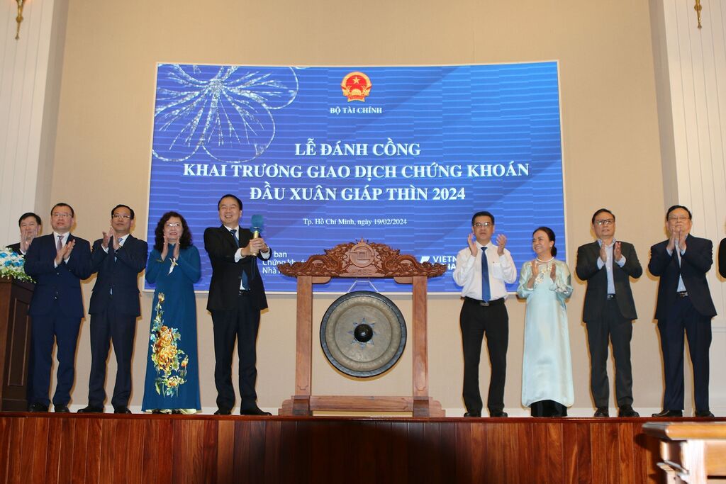 | Cérémonie d’ouverture du premier jour de cotation de l'Année du Dragon 2024, le 19 février, à Hô Chi Minh-Ville. |