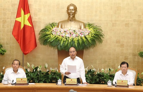 | Le Premier ministre Nguyên Xuân Phuc (centre) lors de la réunion périodique du gouvernement de mai, le 2 juin à Hanoï. |
