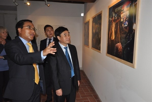 | Le vice-ministre vietnamien des Affaires étrangères Hô Xuân Son (droite) et l'ambassadeur vietnamien en Italie, Nguyên Hoàng Long, à l'exposition photographique de l'artiste italien Paolo Belletti, le 10 septembre à Rome. |