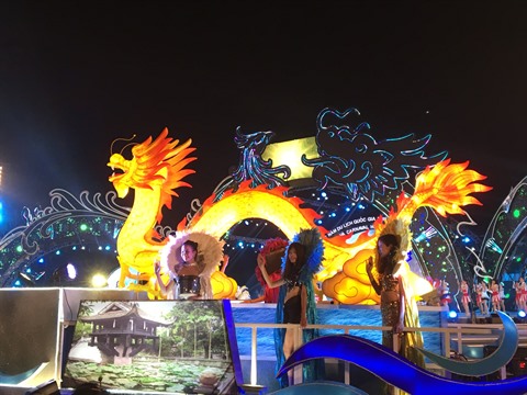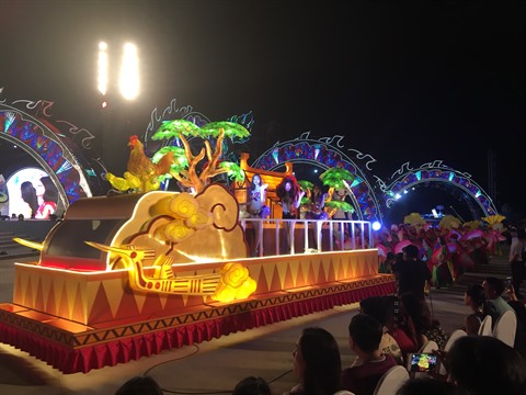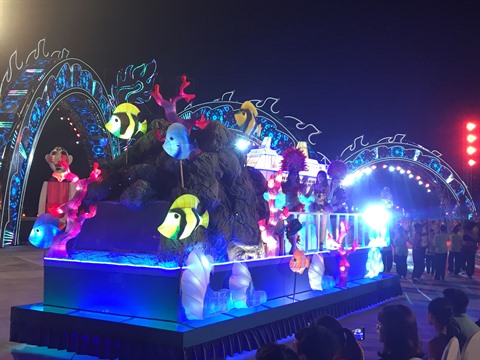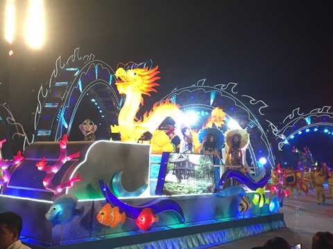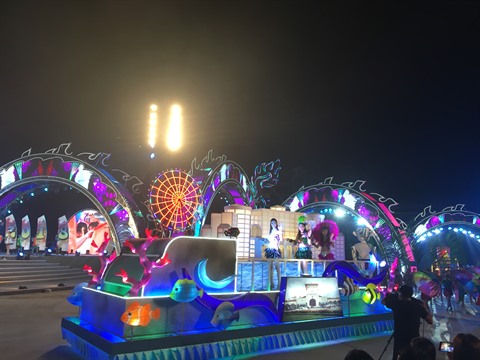 | Le point d’orgue du Carnaval de Ha Long 2018 fut le défilé, avec 12 chars floraux, symboles des ressources touristiques de Quang Ninh. |