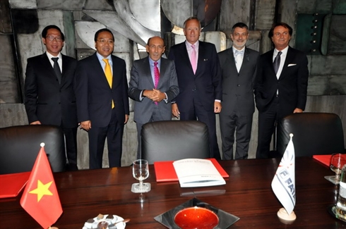 | L'ambassadeur du Vietnam en Italie, Nguyên Hoàng Long (2e à gauche) et les responsables du groupe italien FATA, 13 septembre à la ville de Turin. |