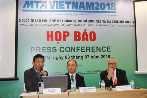 | Conférence de presse présentant l’exposition MTA Vietnam 2018, le 3 juillet à SECC. |