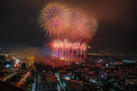 | Feux d'artifice au stade de My Dinh (Hanoï) lors de l'ouverture des SEA Games 31. |