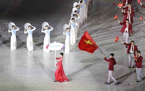 | La délégation vietnamienne à la cérémonie inaugurale des SEA Games 31 à Hanoï. |