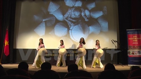 | Un numéro artistique lors de la cérémonie d'ouverture des Journées du film vietnamien en Russie. |