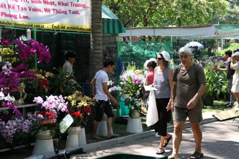 | Les touristes visitent le marché aux fleurs dans le parc du 23 septembre à Hô Chi Minh-Ville |