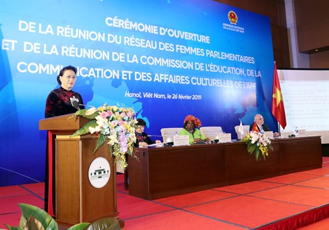 "Le Vietnam apprécie hautement le rôle de l’APF à l’international qui se traduit par l’initiation de programmes de coopération interparlementaire, le renforcement des liens d’amitié et de solidarité entre les institutions parlementaires, par ses contributions à l’épanouissement de la diplomatie parlementaire et au rehaussement de la position et de la voix des parlementaires sur les questions régionales et internationales", a dit Nguyên Thi Kim Ngân, présidente de l’Assemblée nationale (AN) du Vietnam, lors de la cérémonie d’ouverture des réunions.