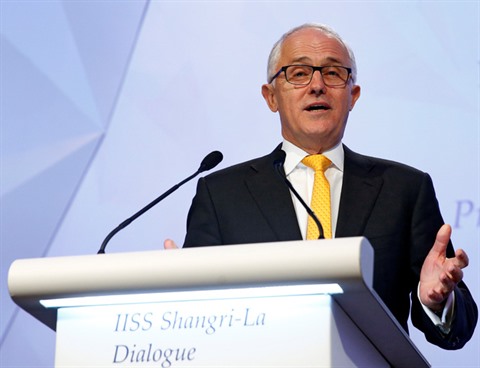| Le Premier ministre australien Malcolm Turnbull prononce son discours, |