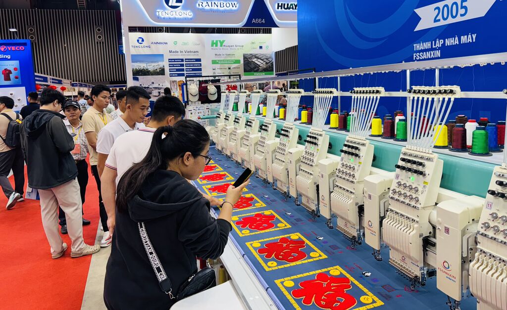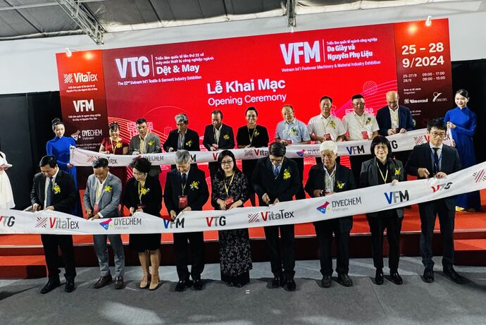 Organisé simultanément du 15 au 17 octobre dans la mégapole du Sud, trois événements, à savoir le Salon international des accessoires textiles et vestimentaires du Vietnam (VITATEX) 2025, le Salon international de la chimie et de la teinture du Vietnam (DYECHEM) 2025 et le Salon international des machines et matériaux pour le cuir et la chaussure (VFM) 2025 était réunis pour le VTG 2025 sur une surface de 15.000m² rassemblant plus de 400 exposants répartis sur plus de 750 stands d’exposition, venus de dix pays et territoires tels que la Chine, Hong Kong (Chine), l’Inde, la Malaisie, le Pakistan, Singapour, la République de Corée, Taïwan (Chine), la Thaïlande et le Vietnam. Le VTG 2025 présente des machines automatisées et numérisées ainsi que les technologies les plus avancées de l'industrie du textile-habillement, la digitalisation des usines, promeut la transformation numérique de l'industrie du textile-habillement du pays et répond aux besoins de diversification des tissus sur le marché actuel.