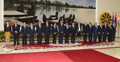 | Photo de famille du 7e Sommet de l'Asie de l'Est, le 20 novembre à Phnom Penh. |