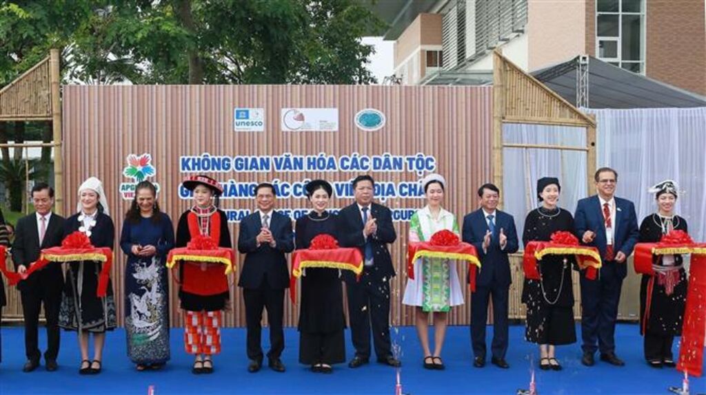 | Inauguration de l'espace culturel des ethnies et du pavillon de promotion des géoparcs au Centre de conférences provincial de Cao Bang. |
