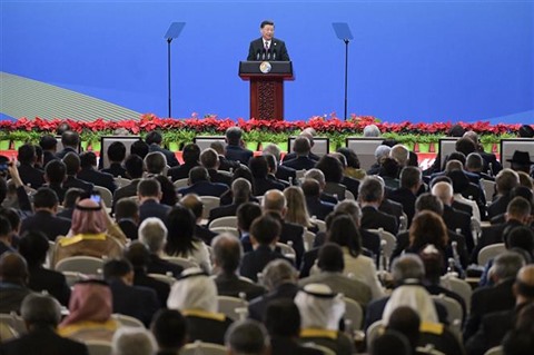 | Le président chinois Xi Jinping prend la parole lors de la cérémonie d'ouverture du 2e Forum de "la Ceinture et la Route", le 26 avril à Pékin. |