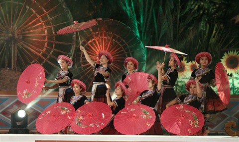 | Un numéro artistique présenté lors de l'ouverture du Festival du tournesol de Nghê An, le soir du 25 décembre . |