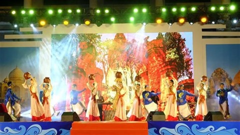 | Représentation artistique célébrant le 70e anniversaire du Jour de l'Indépendance de l'Inde à Khanh Hoà (Centre). |