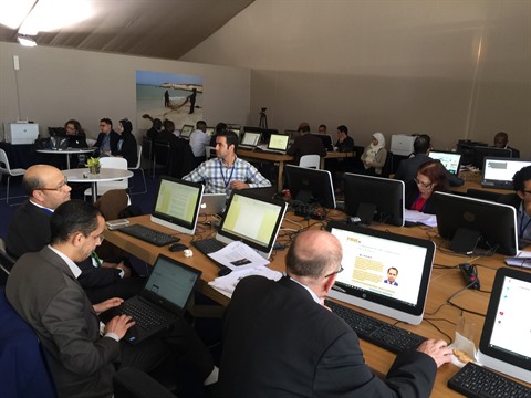 | Les journalistes internationaux en action au Centre de la presse du forum. |