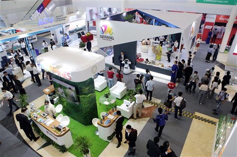 | Des stands de l’exposition sur le tourisme, l’aviation de l’Asie, à Dà Nang. |