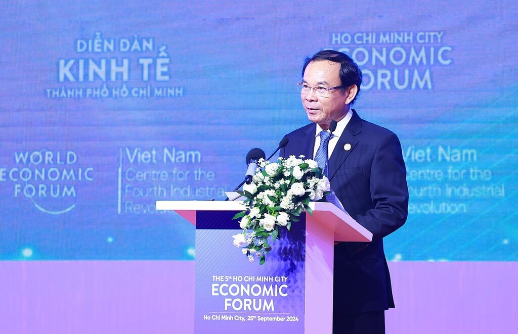 | Le secrétaire du Comité municipal du Parti, Nguyên Van Nên, s'exprimant au Forum économique de Hô Chi Minh-Ville 2024. |