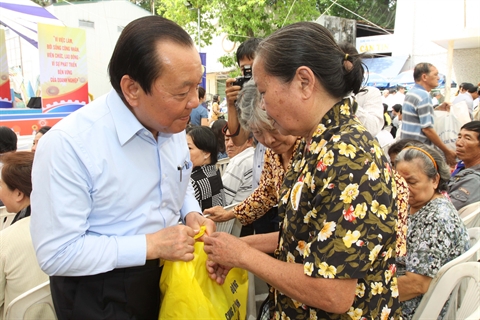 | Le secrétaire de l’Organisation municipale du Parti communiste du Vietnam, Lê Thanh Hai, offre le 25 avril des cadeaux à des ouvriers lors du lancement du Mois des ouvriers de Hô Chi Minh-Ville. |