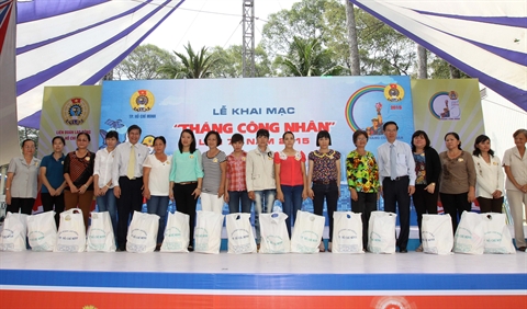 | Les ouvriers reçoivent des cadeaux lors de l’ouverture de la 7e édition du Mois des ouvriers de Hô Chi Minh-Ville. |