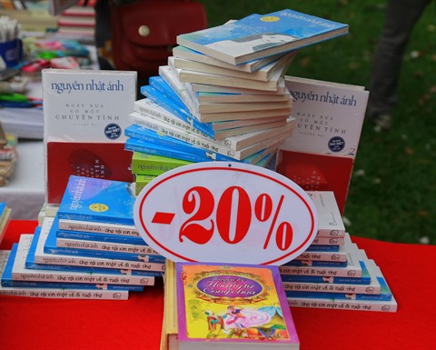 | Un stand propose une réduction de 20% sur les ouvrages de Nguyên Nhât Anh. |