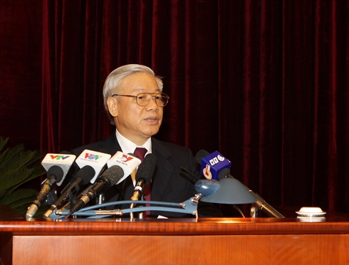 | Le secrétaire général Nguyên Phu Trong à la cérémonie d'ouverture du Ve Plénum (XIe exercice) du CC du PCV, le 7 mai à Hanoi. Photo: Tri Dung/VNA/CVN |
