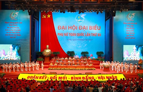 La cérémonie d’ouverture du XIIe Congrès national des femmes vietnamiennes pour le mandat 2017-2022 a été honorée par la présence du secrétaire général du Parti communiste du Vietnam, Nguyên Phu Trong ; du président de la République, Trân Dai Quang ; du Premier ministre Nguyên Xuân Phuc ; de la présidente de l’Assemblée nationale Nguyên Thi Kim Ngân et d’autres personnalités.