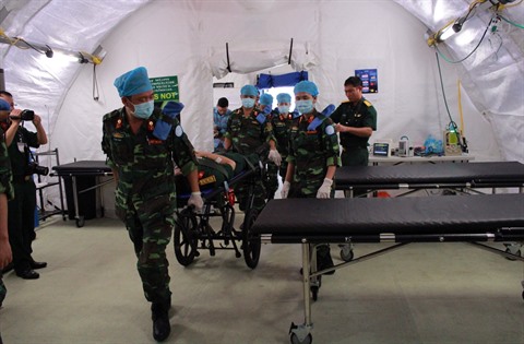 | Des cadres et soldats vietnamiens s'entraînent avant leur départ vers le Soudan du Sud pour les opérations de maintien de la paix de l'ONU. |