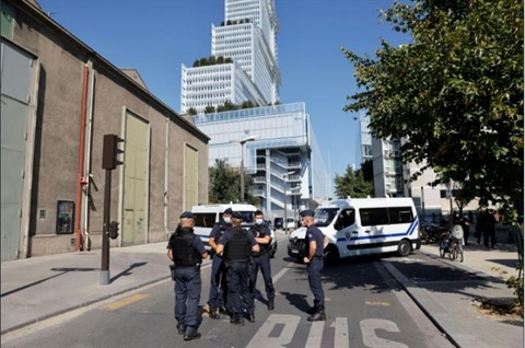 | Des policiers montent la garde à l'extérieur du Palais de justice de Paris, le 2 septembre pour le procès des attentats contre Charlie Hebdo et l'Hyper Cacher. |