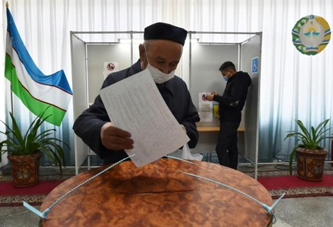 | Un homme vote à l'élection présidentielle, le 24 octobre à Tachkent, en Ouzbékistan. |