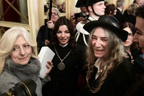 | La chanteuse Patti Smith à son arrivée pour "Tosca" de Puccini à la Scala de Milan, le 7 décembre. |