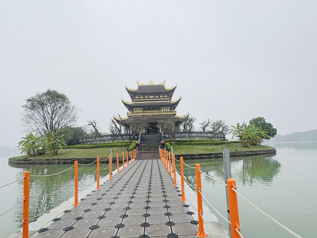 Située sur une petite île au milieu du lac Cá Voi (ou lac Nui Lo), dans la commune de Ninh Nhât, ville de Hoa Lu, province de Ninh Binh, la pagode Bat Long, également connue sous le nom de pagode d’Or, offre un spectacle visuel saisissant. Son architecture remarquable se fond harmonieusement dans le paysage aquatique environnant, créant une véritable peinture vivante.
