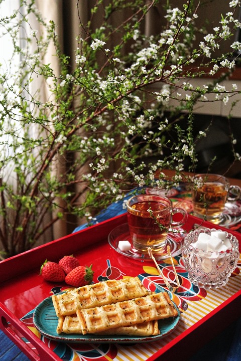 - Ou bien à l’aide d’un gaufrier, faire cuire chaque morceau pendant 5 minutes.