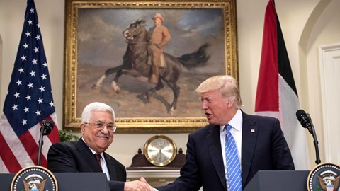 | Le président des États-Unis Donald Trump (droite) et son homologue palestinien Mahmoud Abbas, le 3 mai à la Maison Blanche. |