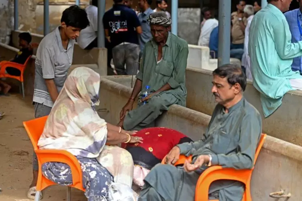 | Des proches de victimes attendent des nouvelles après l'effondrement d'un immeuble d'habitation à Karachi, le 4 juillet 2025. |