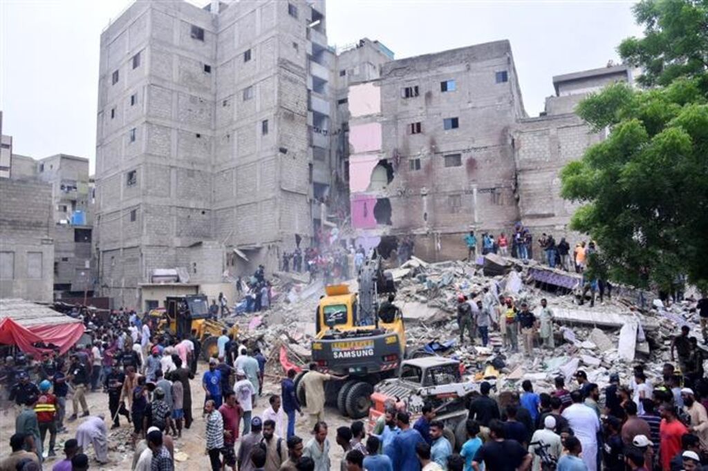 | Lieux d'un effondrement d'un immeuble à Karachi, le 4 juillet au Pakistan. |