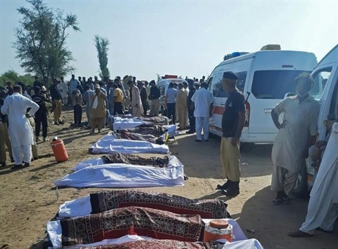 Les corps de victimes d'un accident de train, le 7 juin à Daharki, dans le nord du Pakistan. Photo : AFP/VNA/CVN |