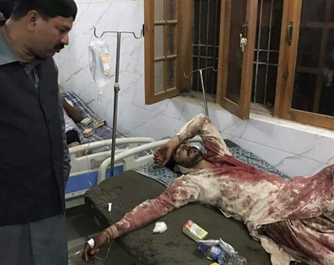 Un Pakistanais blessé dans l'explosion du bombe à Sehwan au Pakistan, le 16 février. Photo : AFP/VNA/CVN |