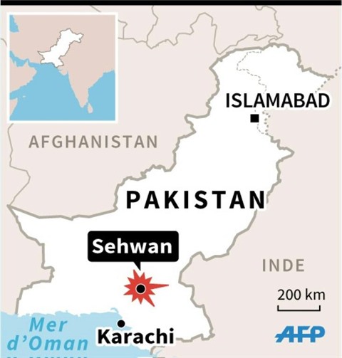 La déflagration s'est produite dans la ville de Sehwan, à environ 200 km au nord-est de la mégalopole portuaire du Sud, Karachi.