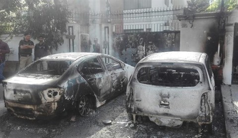 Des photos et vidéos sur les réseaux sociaux montraient des nuages de fumée s'élever de la zone. Un "échange de tirs avec les assaillants a tué deux policiers et en a blessé sérieusement un troisième", a-t-il raconté, ajoutant qu'un des assaillants portait une veste-suicide, qui n'a pas explosé.